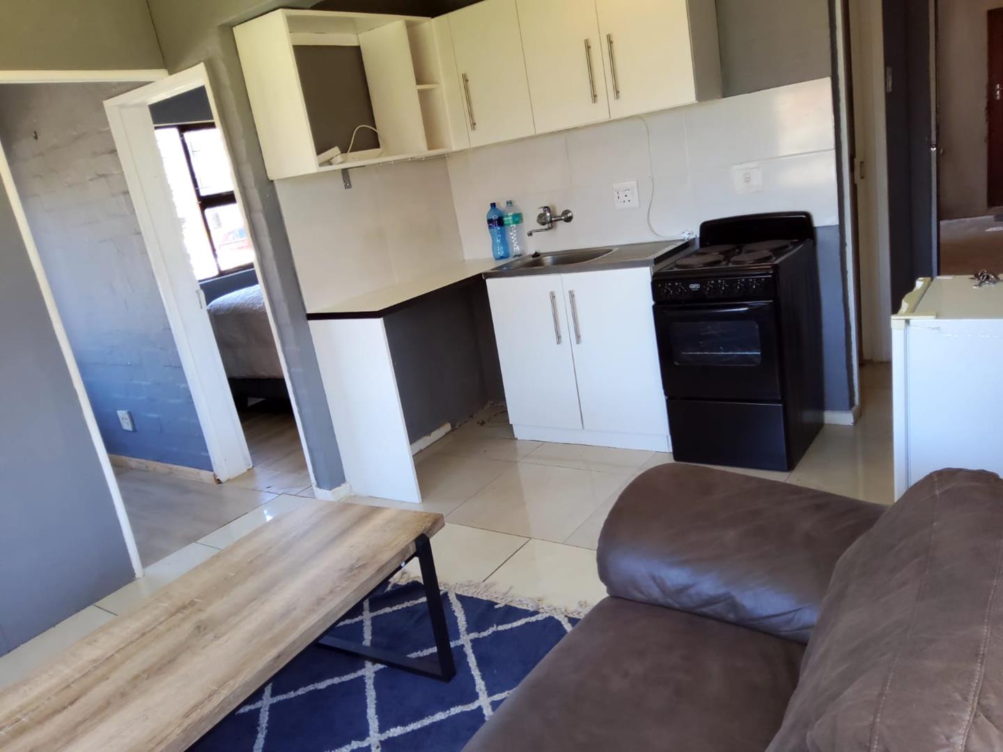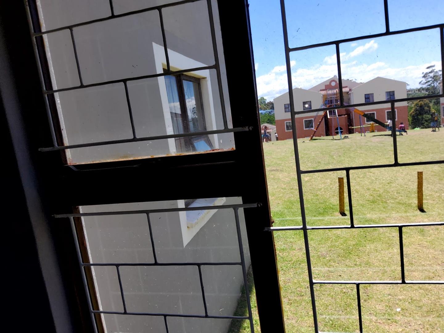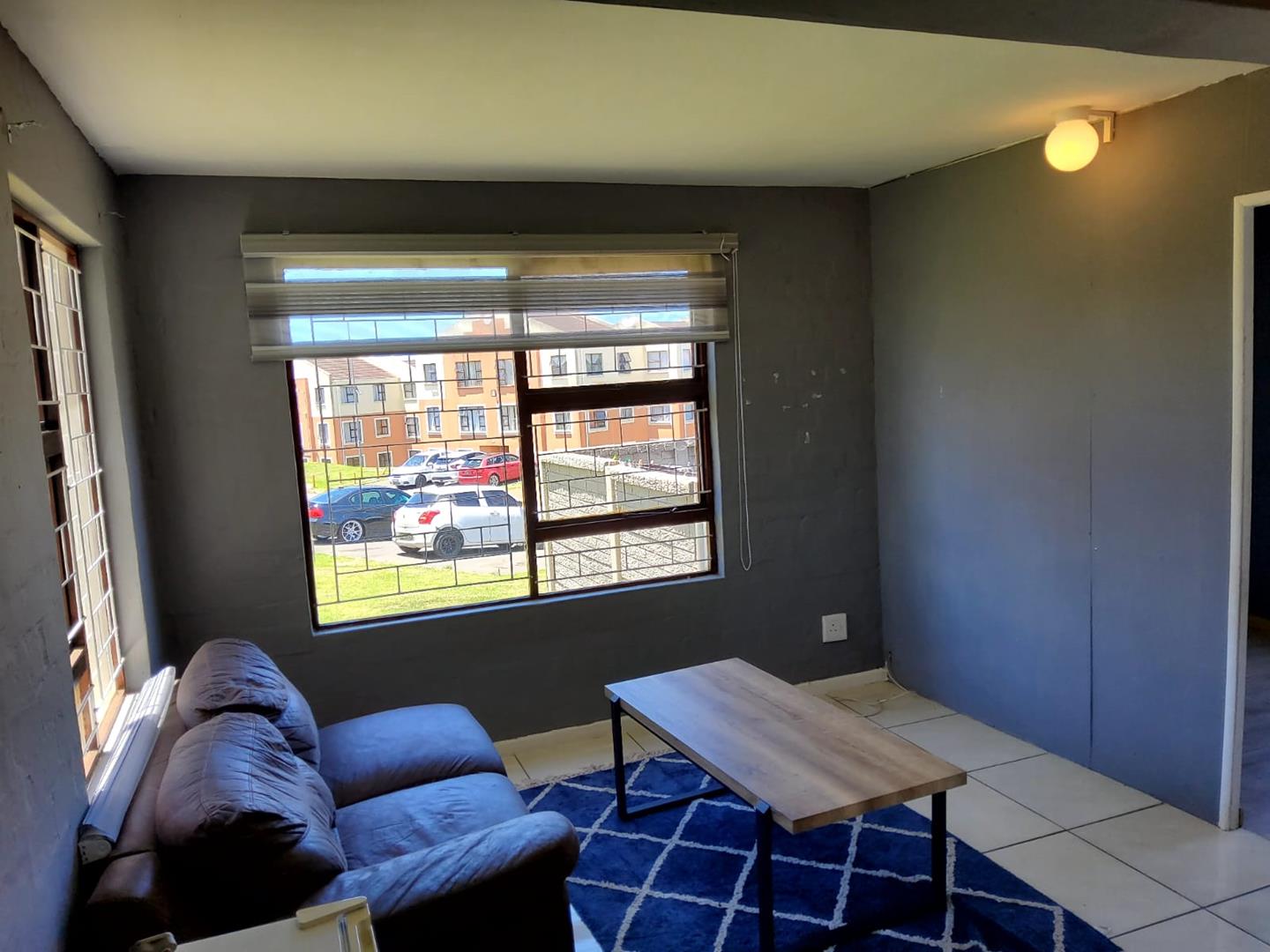 The open-plan kitchen is designed with functionality in mind, boasting built-in cupboards and sleek tiles that seamlessly flow into the lounge area. The lounge, complete with blinds and burglar bars for added safety, is perfect for relaxation and entertaining.