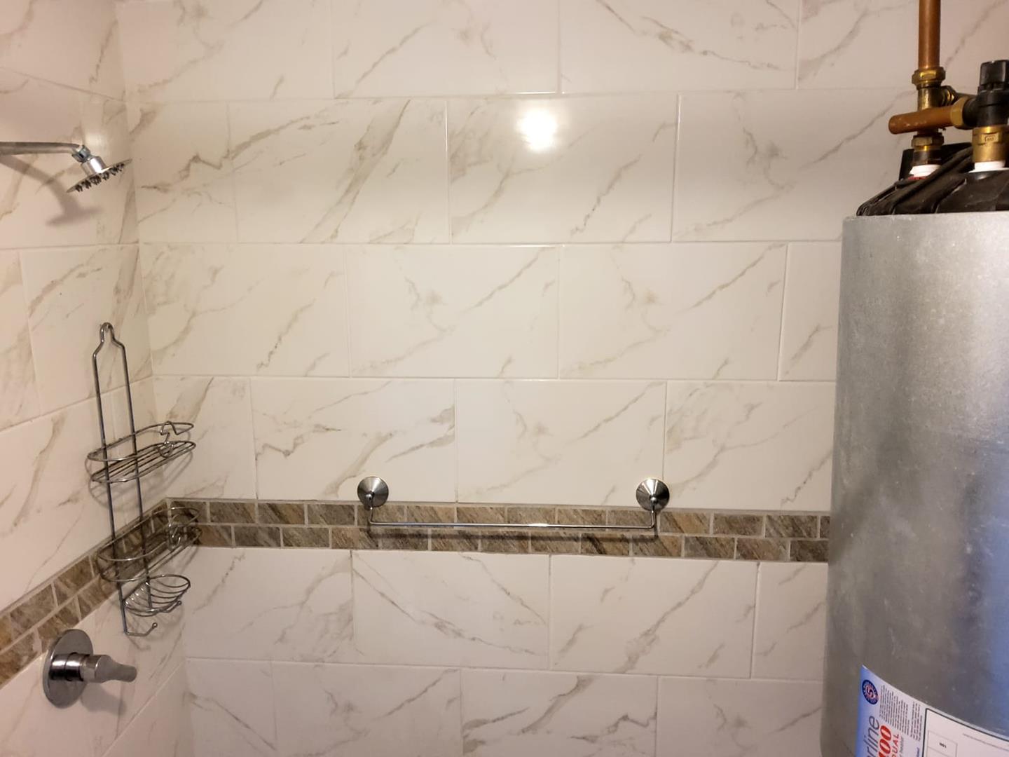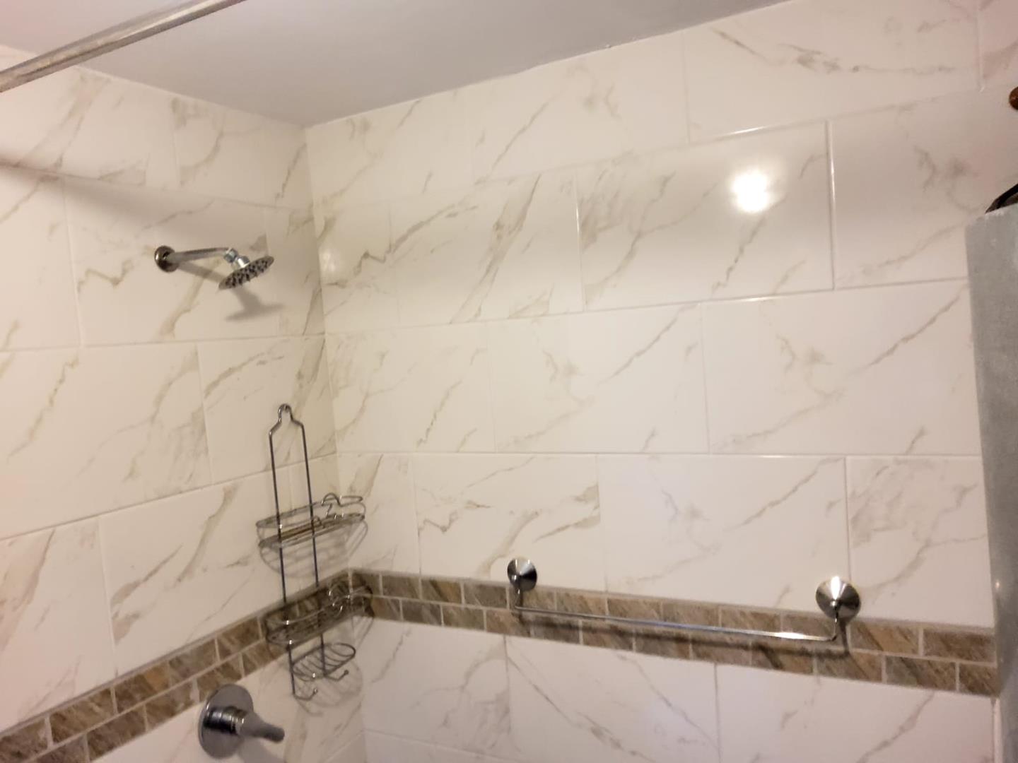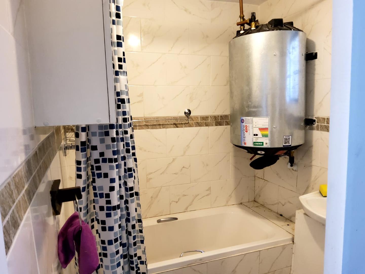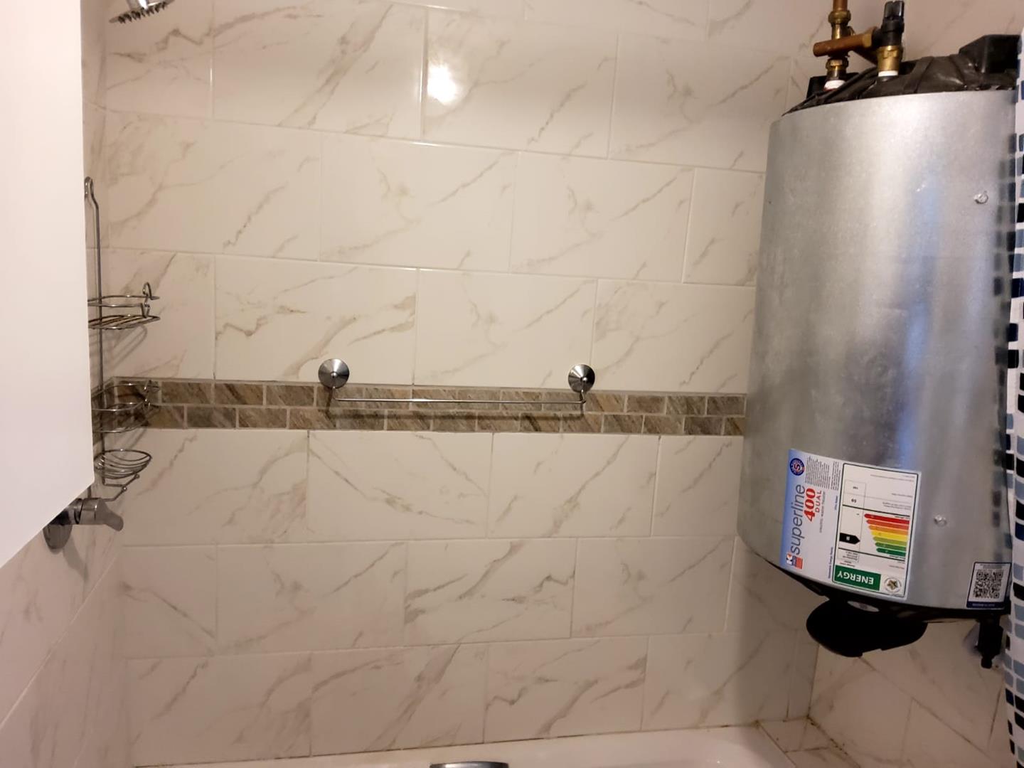 The modern bathroom is fitted with quality tiles and includes both a shower and a bath, catering to all your personal needs.
