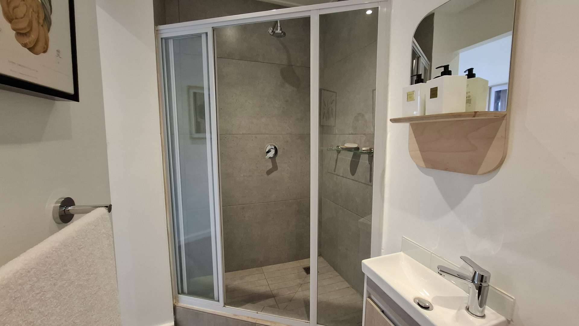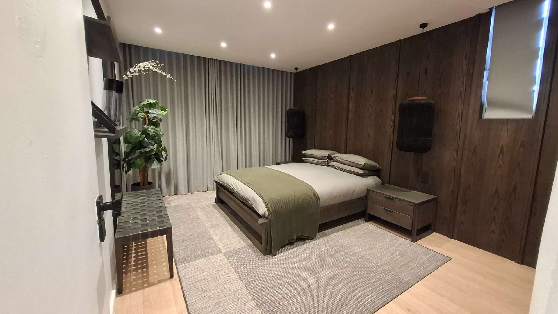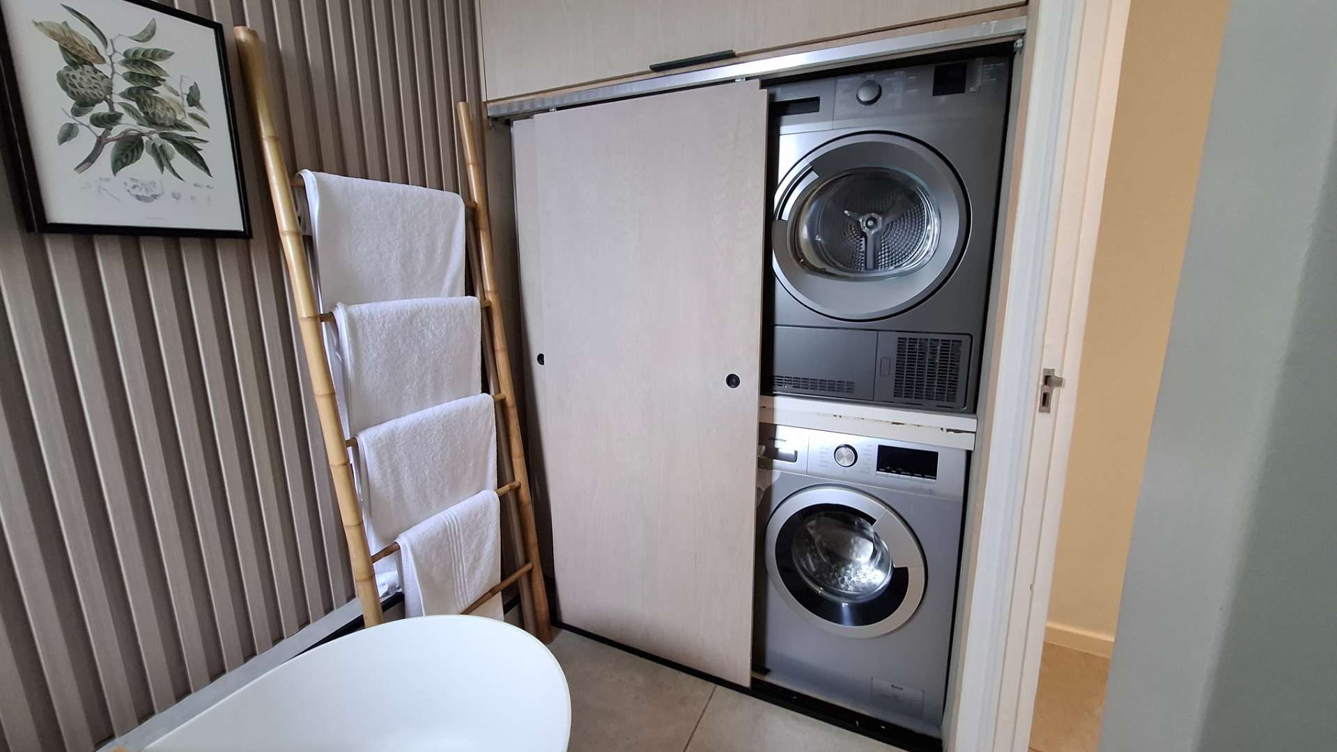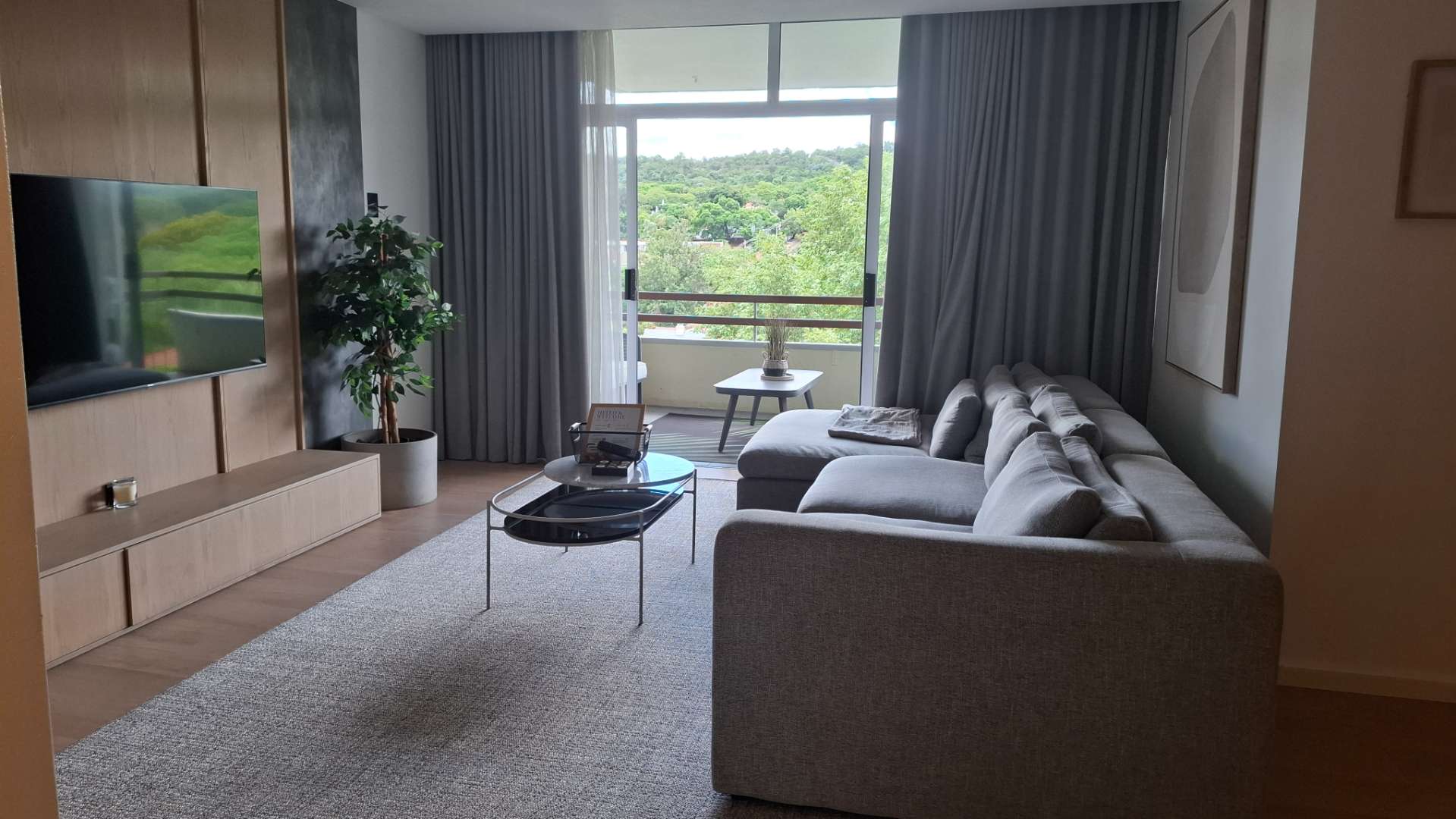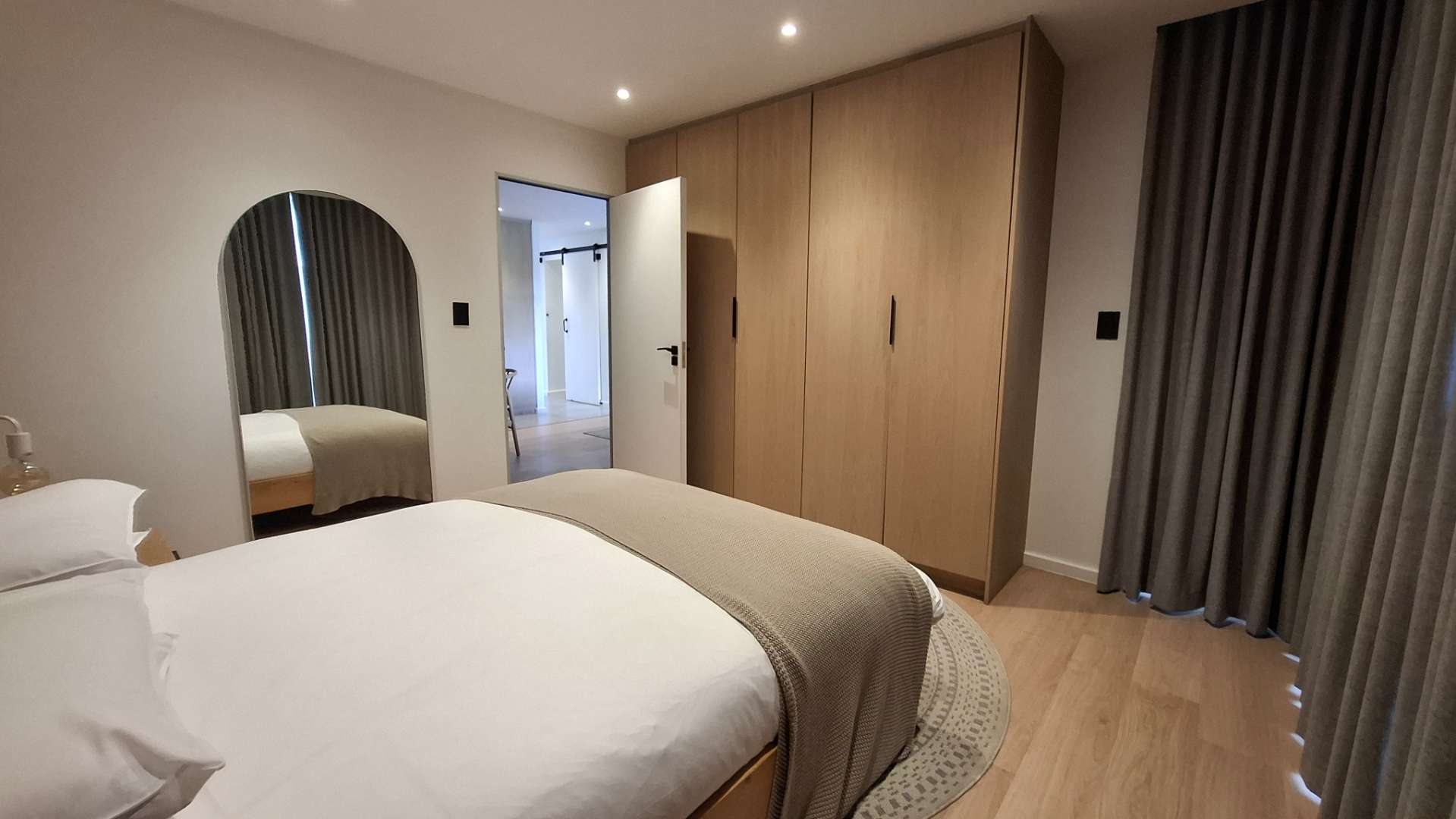 The heart of this home is its luxurious kitchen, thoughtfully designed with modern aesthetics and functionality in mind. It includes a hidden fridge, ensuring seamless lines and a clutter-free environment. Adjacent to the kitchen is an inviting lounge area, perfect for entertaining or unwinding after a long day. The lounge opens up to a spacious patio through a sliding door, where you can enjoy a breathtaking view of the iconic Union Buildings.