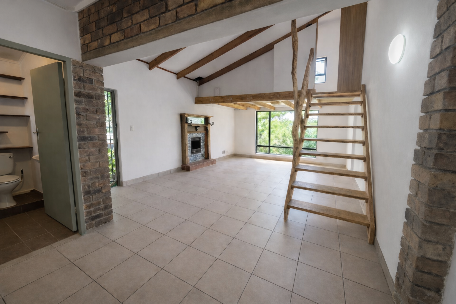 Upstairs, the loft bedroom provides a private and spacious retreat with ample room for relaxation and rest.