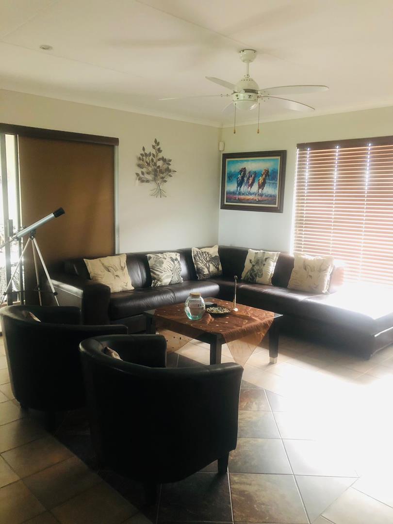The living area offers a large open-plan kitchen, lounge, and dining area, complete with a built-in indoor braai, making it ideal for entertaining or relaxing evenings at home.