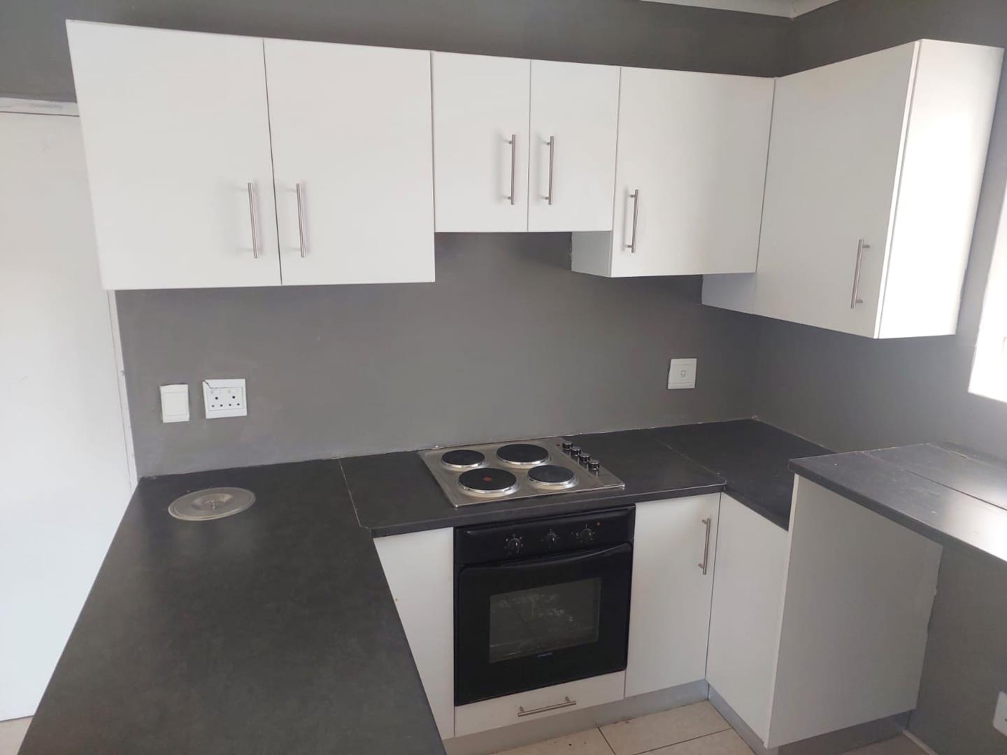Step into the modern kitchen, where sleek porcelain tiles enhance the well-equipped space. It features built-in cupboards, an oven, and a hob, ensuring a delightful cooking experience. With ample room for both a washing machine and a fridge, this kitchen serves as a practical and stylish heart of the home.