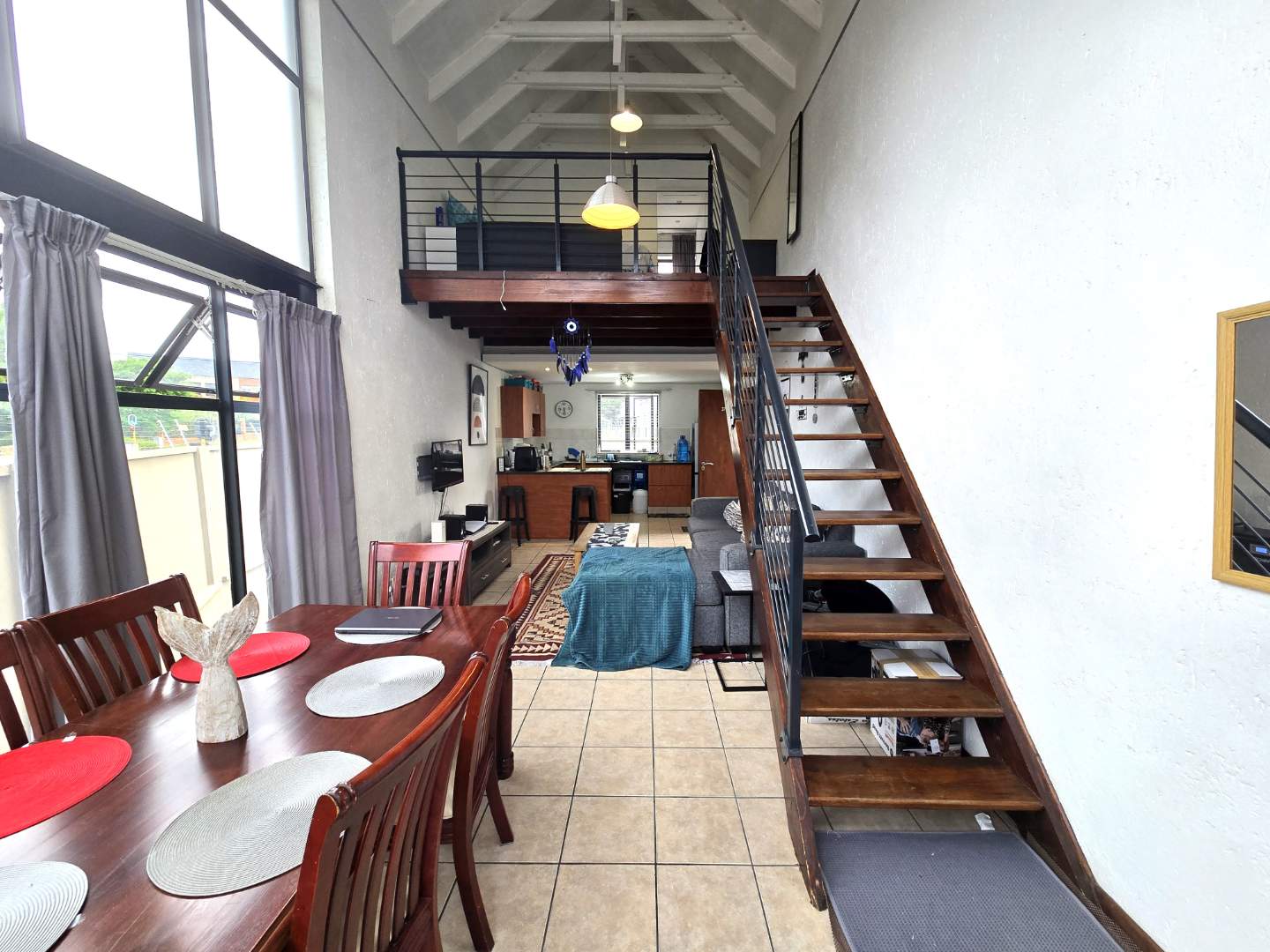 Upstairs is your private retreat with built-in cupboards and a bathroom with a shower. The loft layout enhances the sense of space and separation between living and sleeping areas.