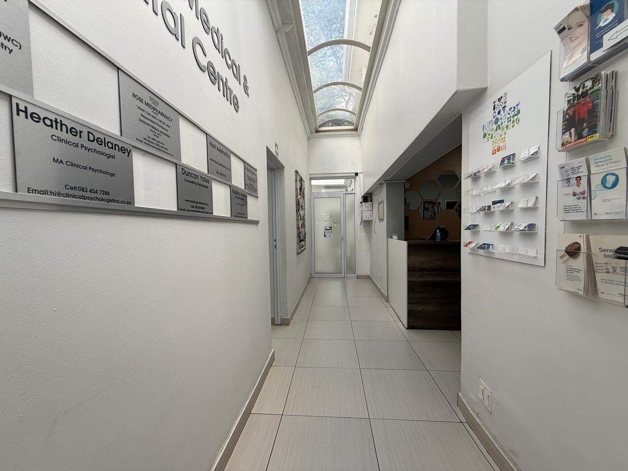 The suite is equipped with air conditioning, providing a comfortable environment for both practitioners and patients. Priced at R11,500 per month (exclusive of VAT), this offer is all-inclusive, covering essential amenities such as Wi-Fi, utilities, and parking. Additionally, tenants have access to a communal kitchen and benefit from onsite security, ensuring a safe and convenient working environment.