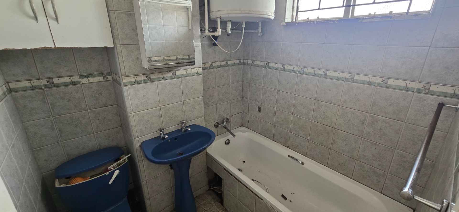 The unit features a separate kitchen with ample storage and workspace, making it both practical and functional. The family bathroom includes a bathtub, basin, and toilet.