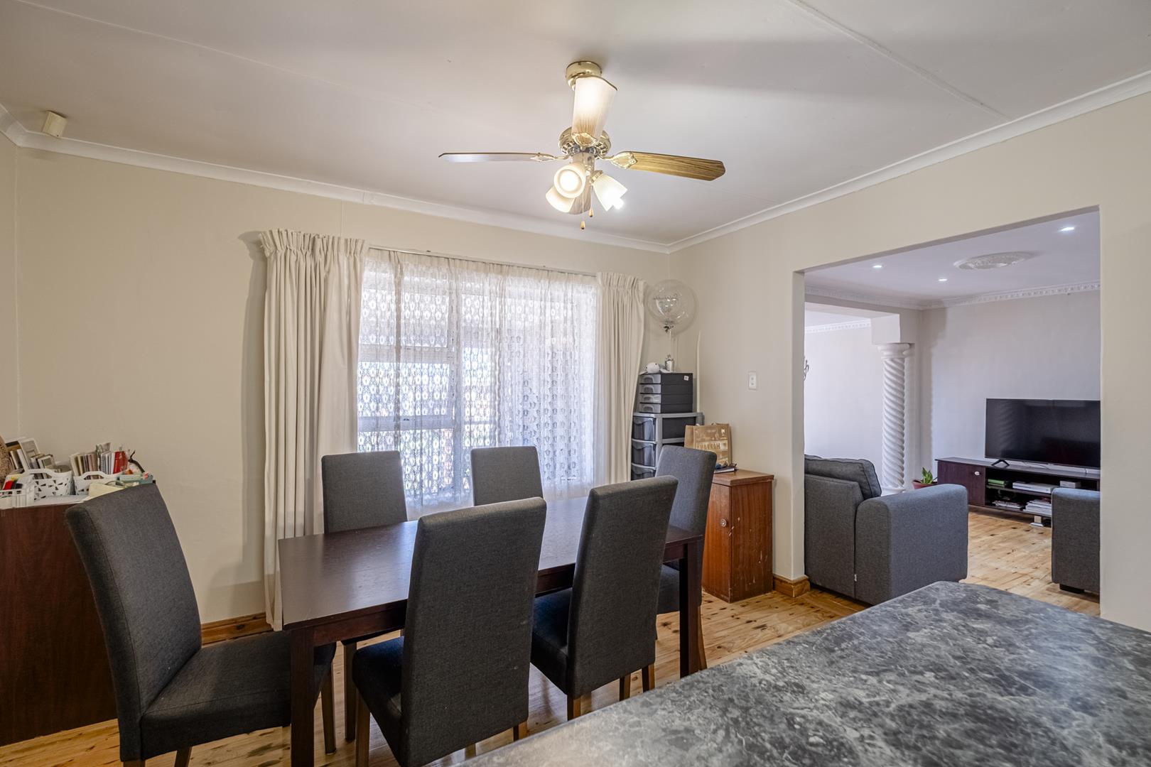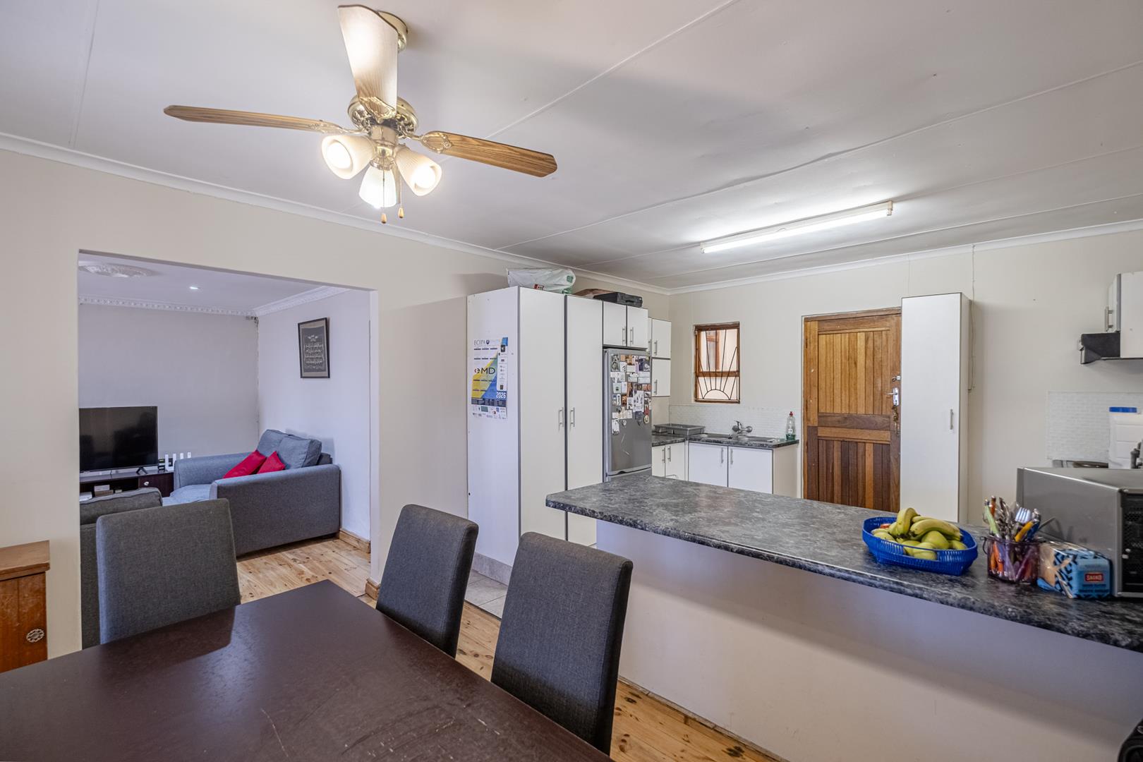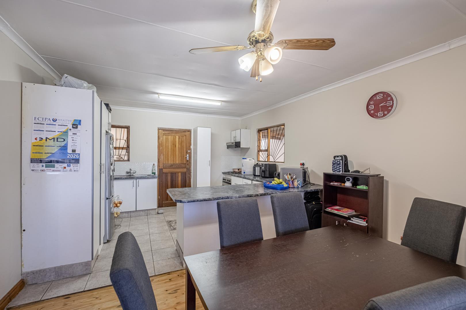 The spacious kitchen with ample built-in cupboards flows easily into the dining room, creating a warm family atmosphere. The TV lounge with fibre connectivity is perfect for relaxed evenings, while the enclosed stoep and braai area linked to the kitchen make this home ideal for entertaining guests and enjoying quality family time.