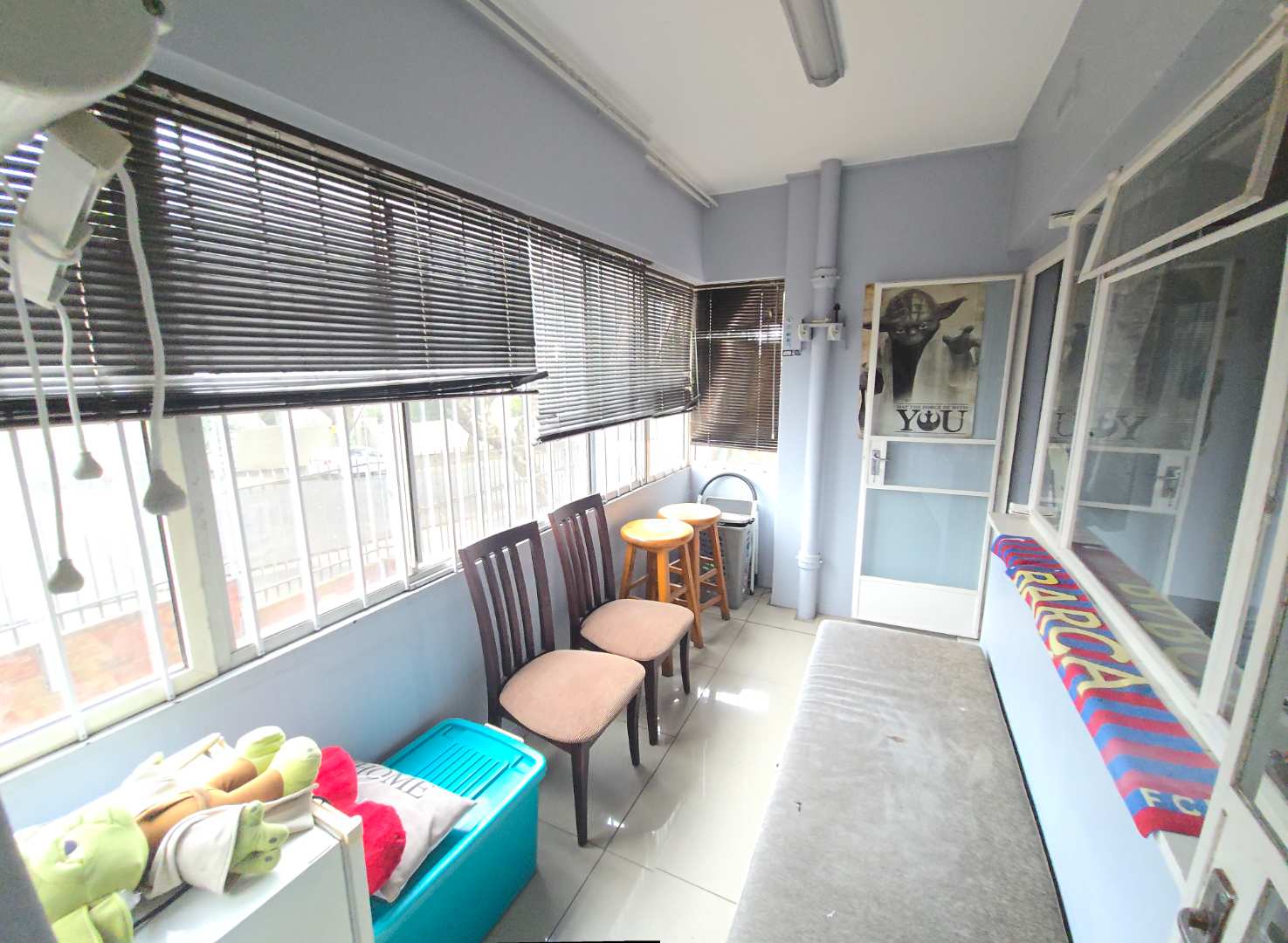 An enclosed balcony is currently utilized as an additional bedroom, adding extra versatility to the space. The main bedroom is spacious and includes ample built-in cupboards.