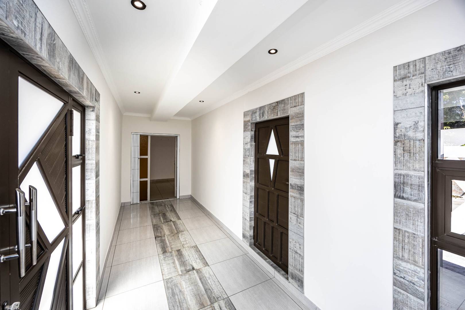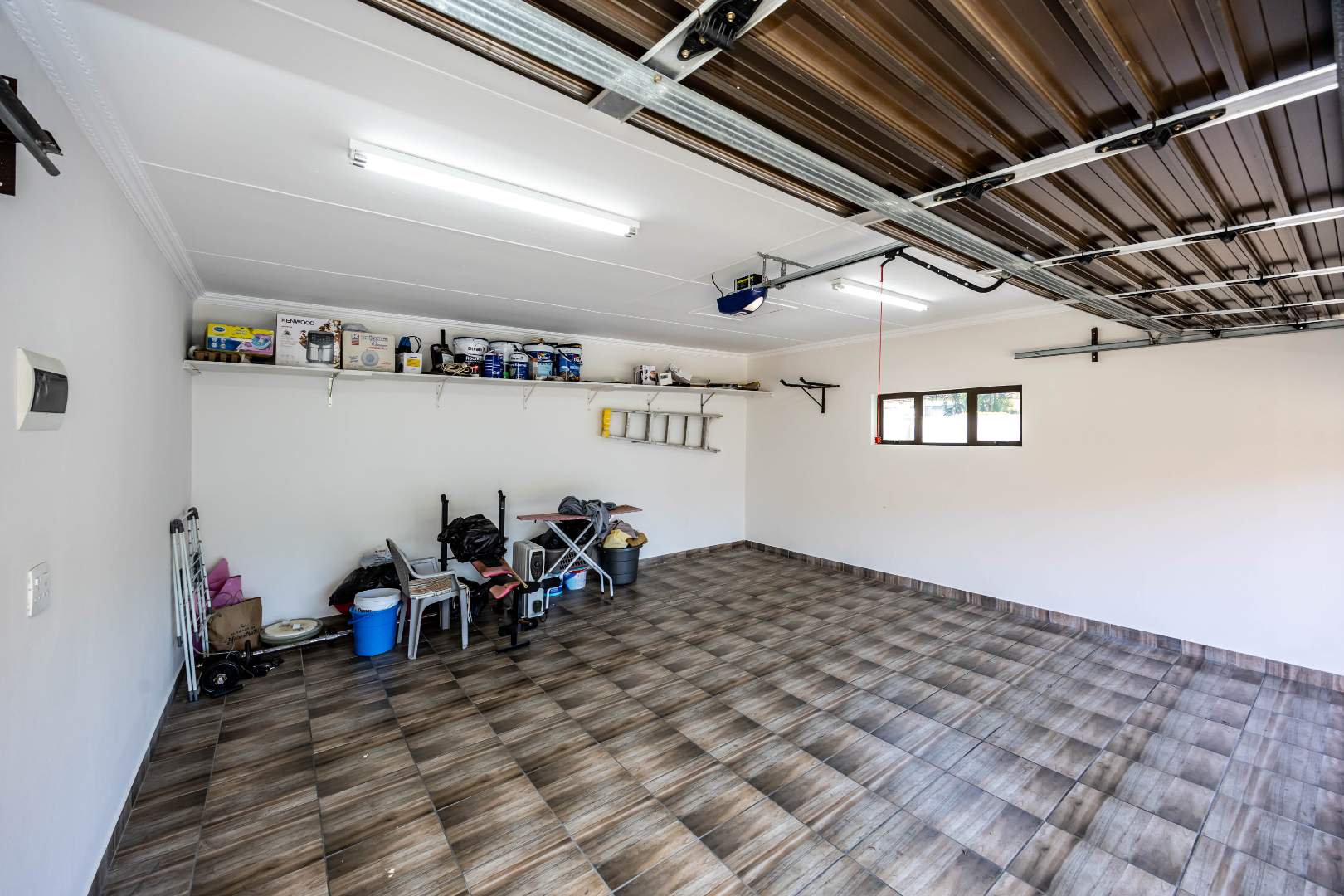 This property is equipped with over 10,000 liters of water storage, ensuring that municipal water is only necessary during particularly dry seasons. The double garage is thoughtfully connected to the main dwelling via an impressive entrance passage, adding both functionality and style. The exterior of the property is neatly paved with tar and concrete, leaving only the backyard lawn for easy maintenance.