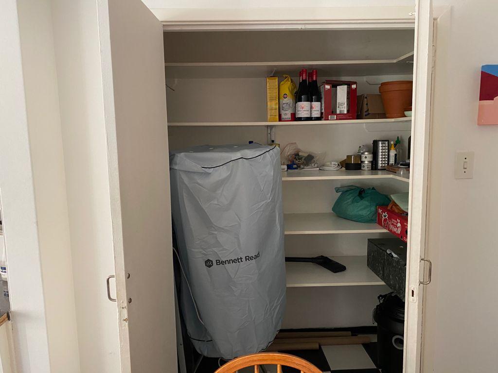 The kitchen area is equipped with a pantry, offering additional storage space for all your culinary needs. Whether you're an aspiring chef or someone who enjoys occasional home-cooked meals, this feature adds a practical touch to your daily routine.