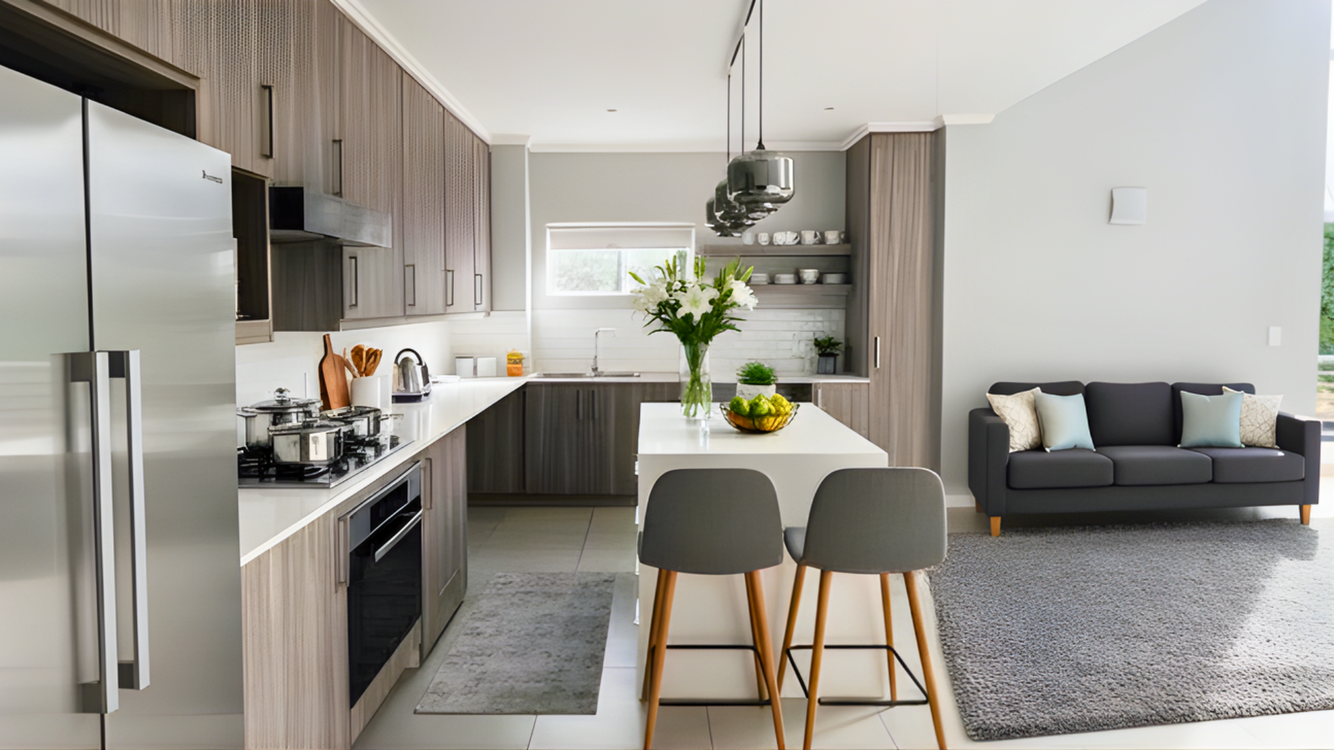 Upon entering, you are welcomed by an open plan kitchen that is truly a chef's delight. Equipped with top-of-the-line Meile appliances and adorned with sleek Caesar stone countertops, this kitchen combines functionality with style, making it the perfect culinary space for both everyday cooking and entertaining.