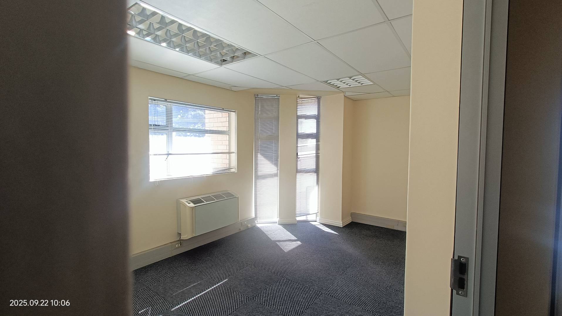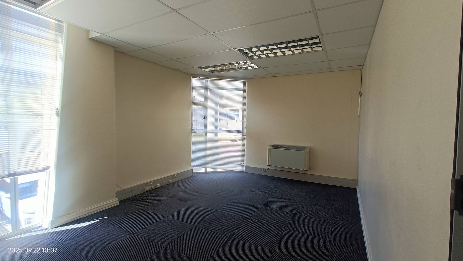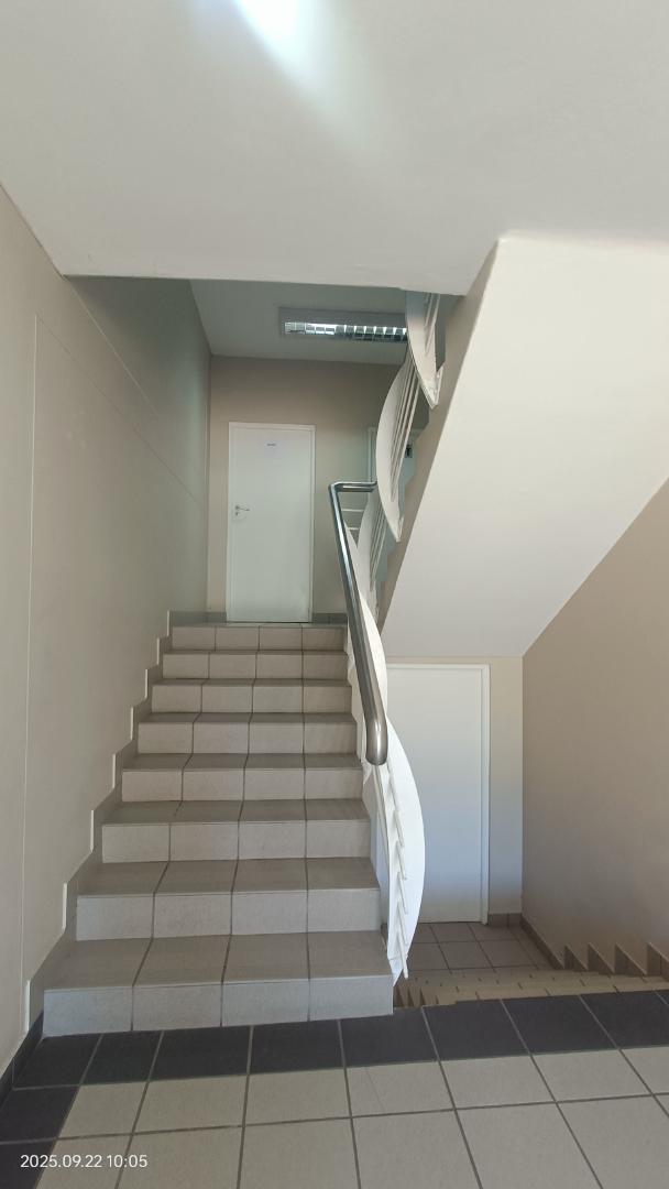This first-floor unit offers five private offices and a welcoming reception area, perfect for a professional setup. Enjoy comfort and convenience with air-conditioning, fibre connectivity, an alarm system, and access to shared facilities in a well-managed building. Four secure parking bays included.