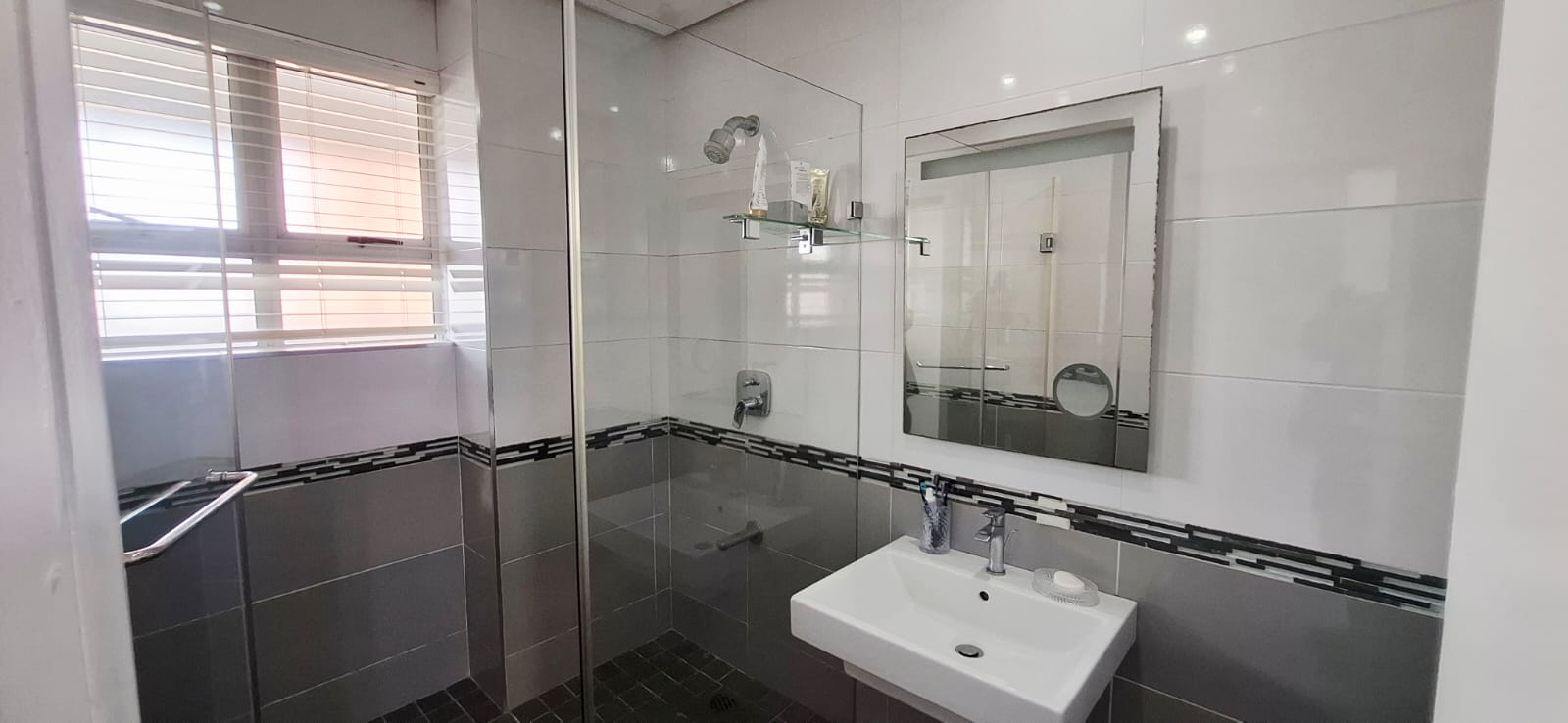 The bathroom has been impeccably remodelled, requiring no further updates. The bedrooms are thoughtfully designed, with one larger than the other, both featuring elegant white ceramic glossy built-in wardrobes.