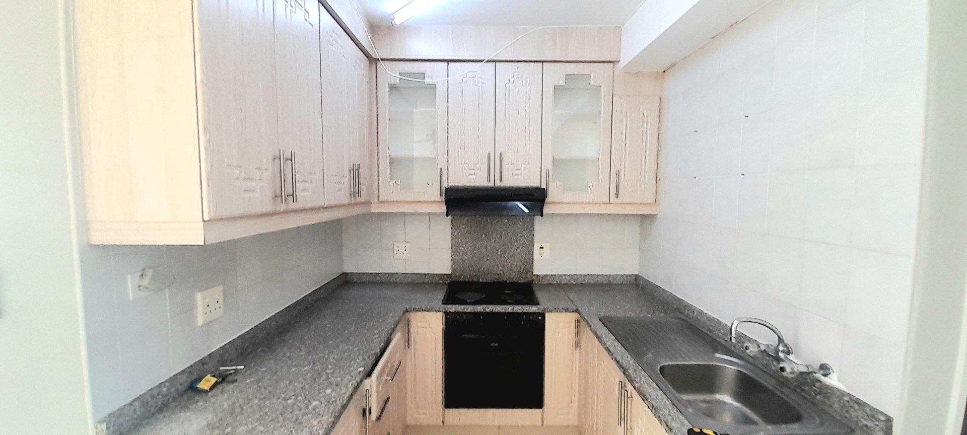 The modern kitchen is a chef's delight, featuring built-in cupboards, sleek granite countertops, a hob, oven, and extractor. Two well-sized bedrooms come with built-in cupboards, ensuring ample storage space. The apartment also includes a bathroom with a shower and basin, as well as a separate toilet for added convenience. A prepaid electricity meter ensures easy management of utility expenses.