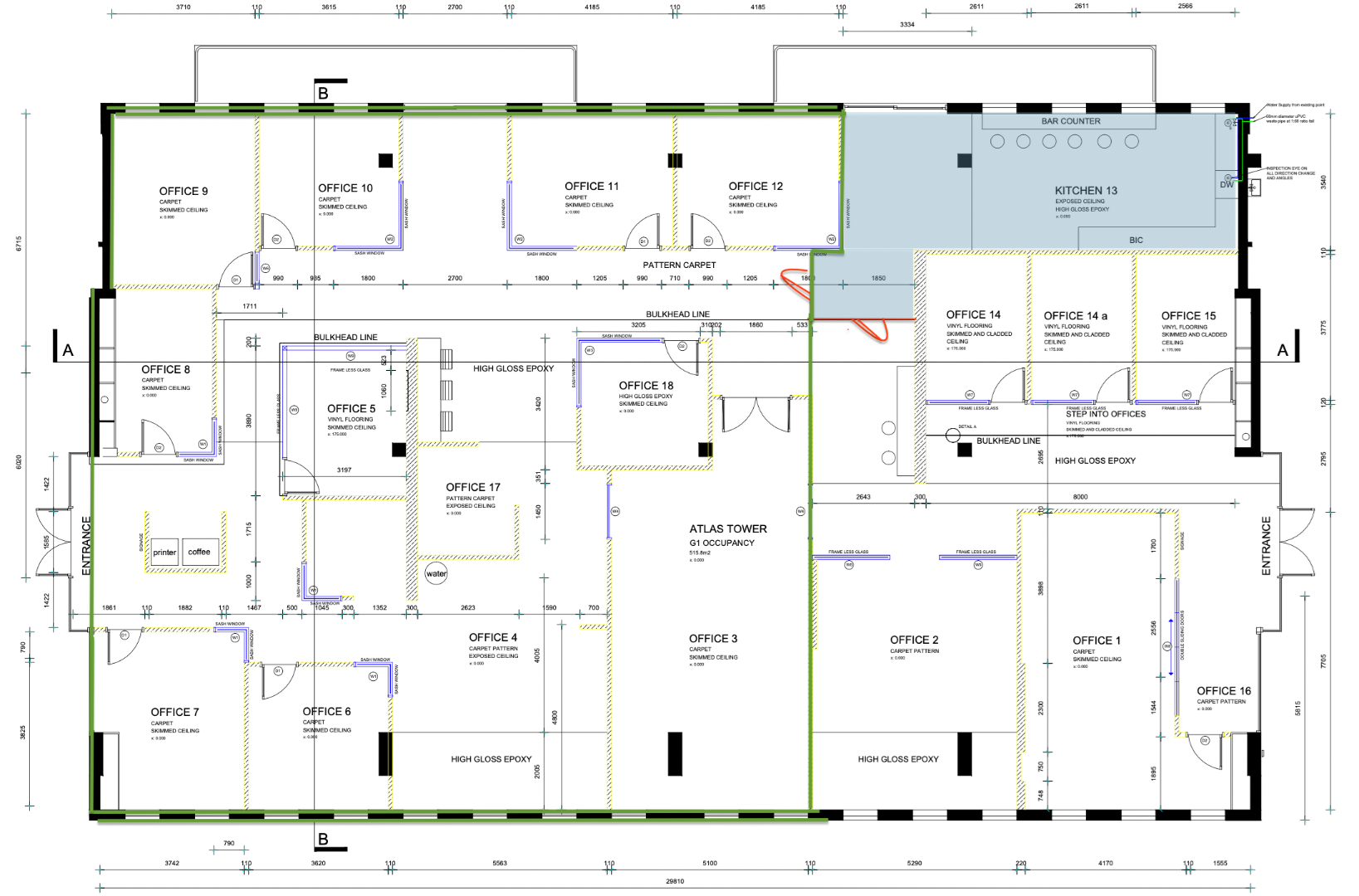 Each area includes shared access to the common kitchen, allowing for flexibility in office setup. The rental rate is R159 per m2, excluding VAT and electricity but inclusive of operational costs.
