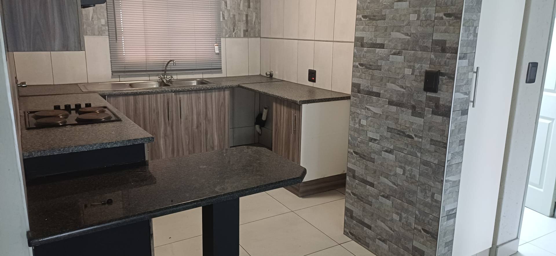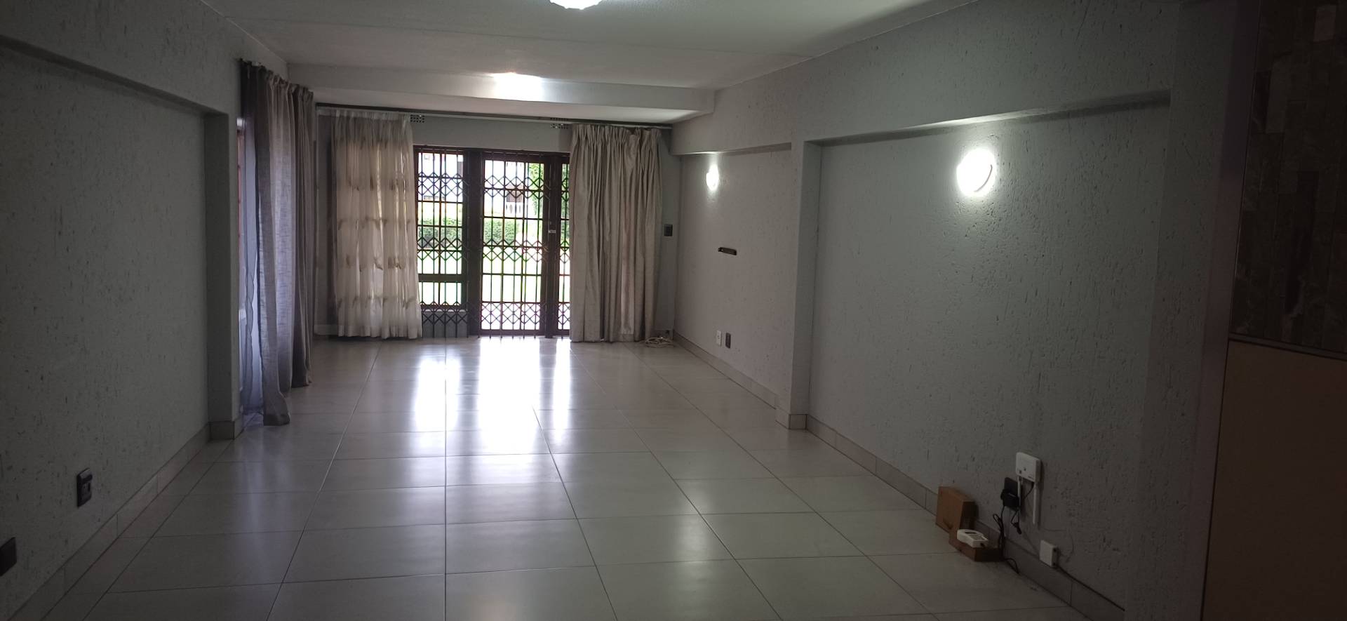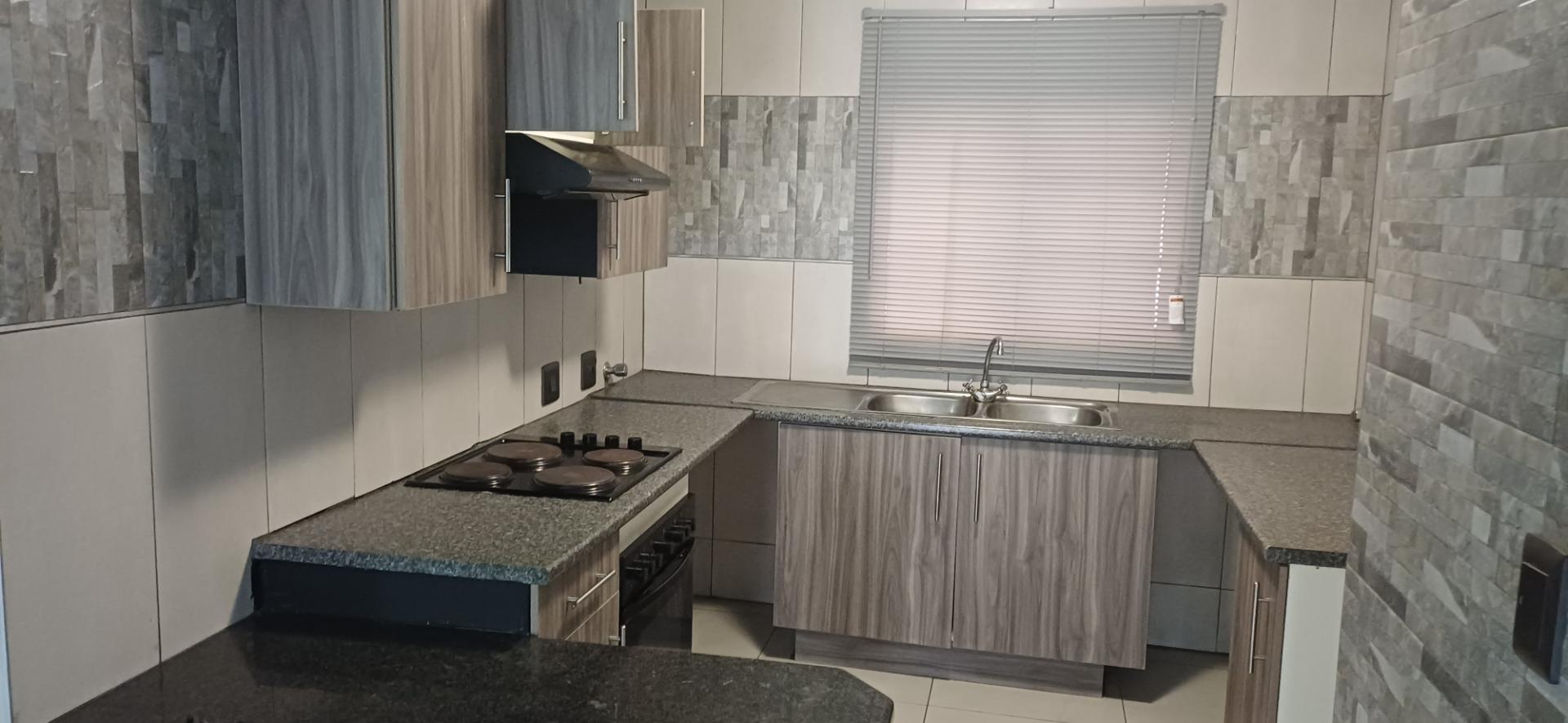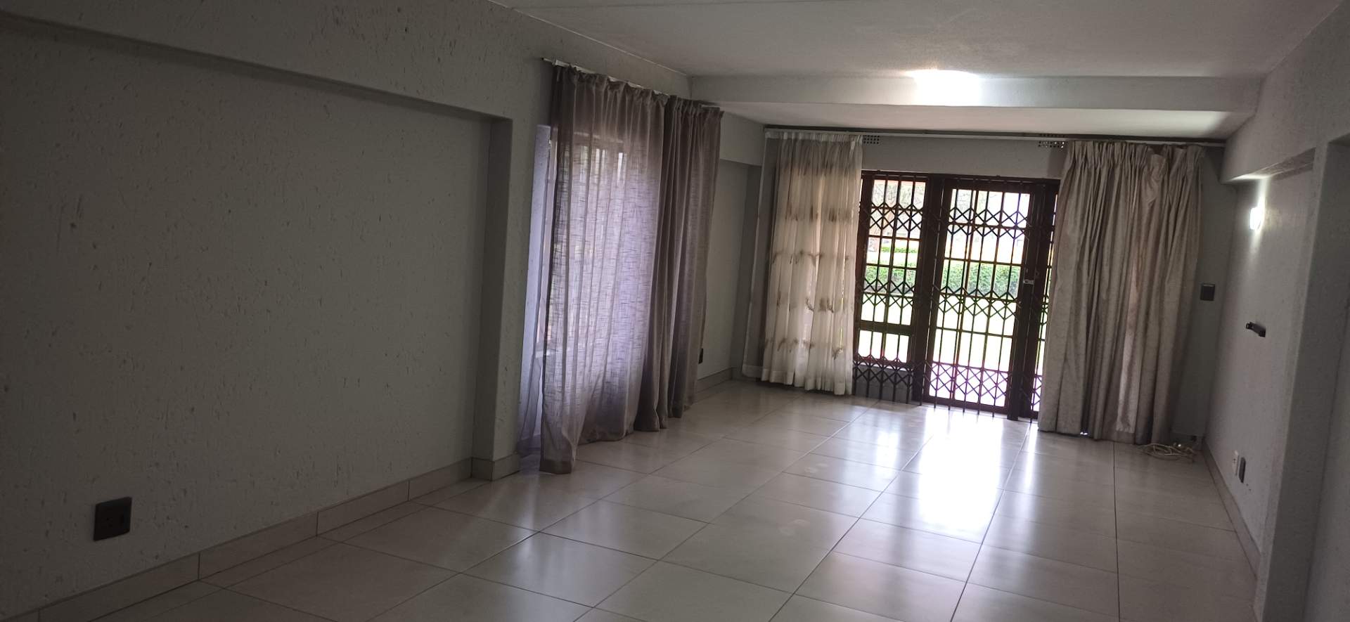 Upon entering, you'll be greeted by a tiled interior throughout. The open-plan kitchen seamlessly connects to a generous lounge and dining area, creating a perfect space for entertaining or relaxing. Large windows adorned with curtains allow natural light to flood the space, while the living area effortlessly extends to a patio overlooking a private garden—a serene retreat after a long day.