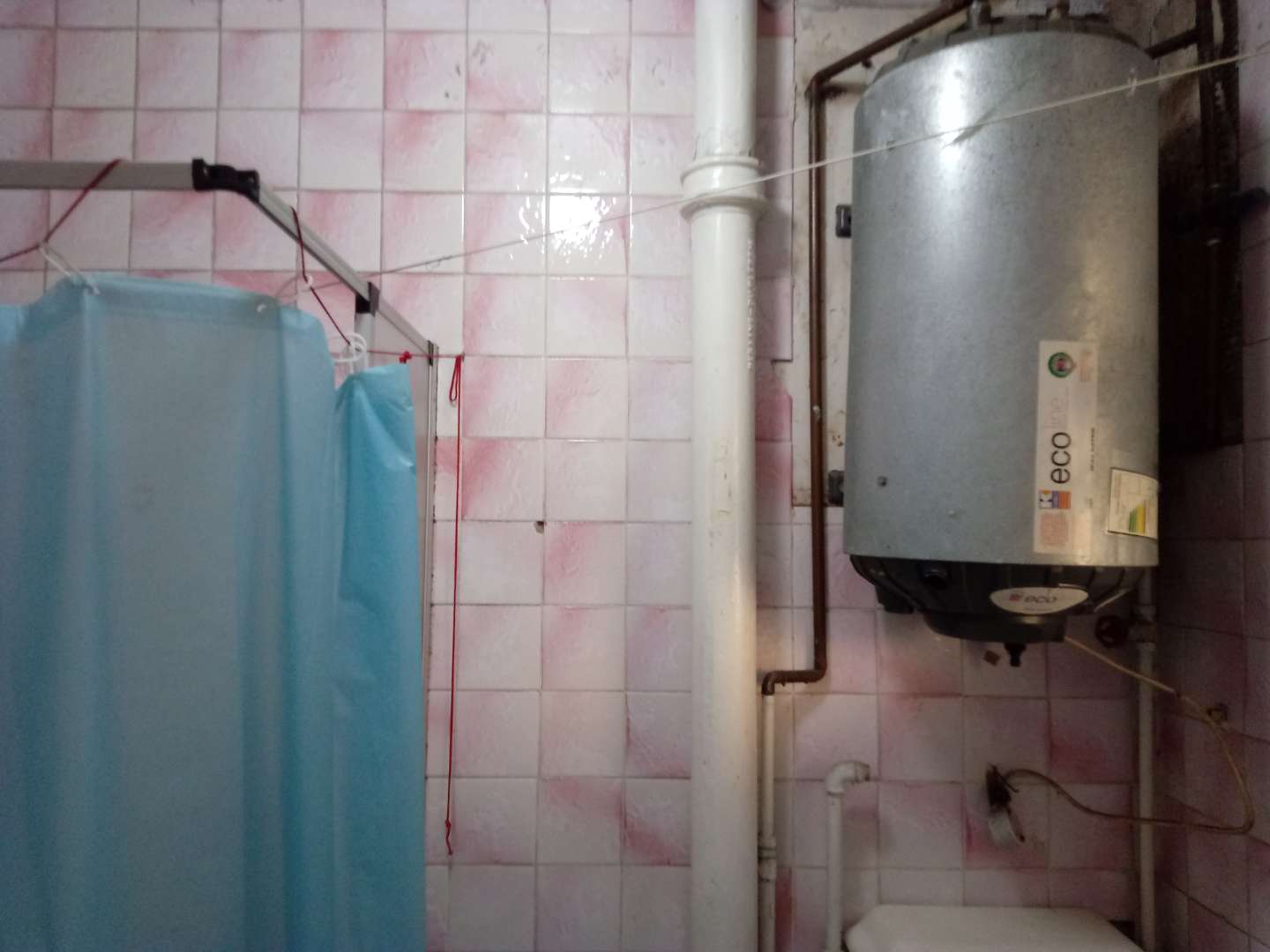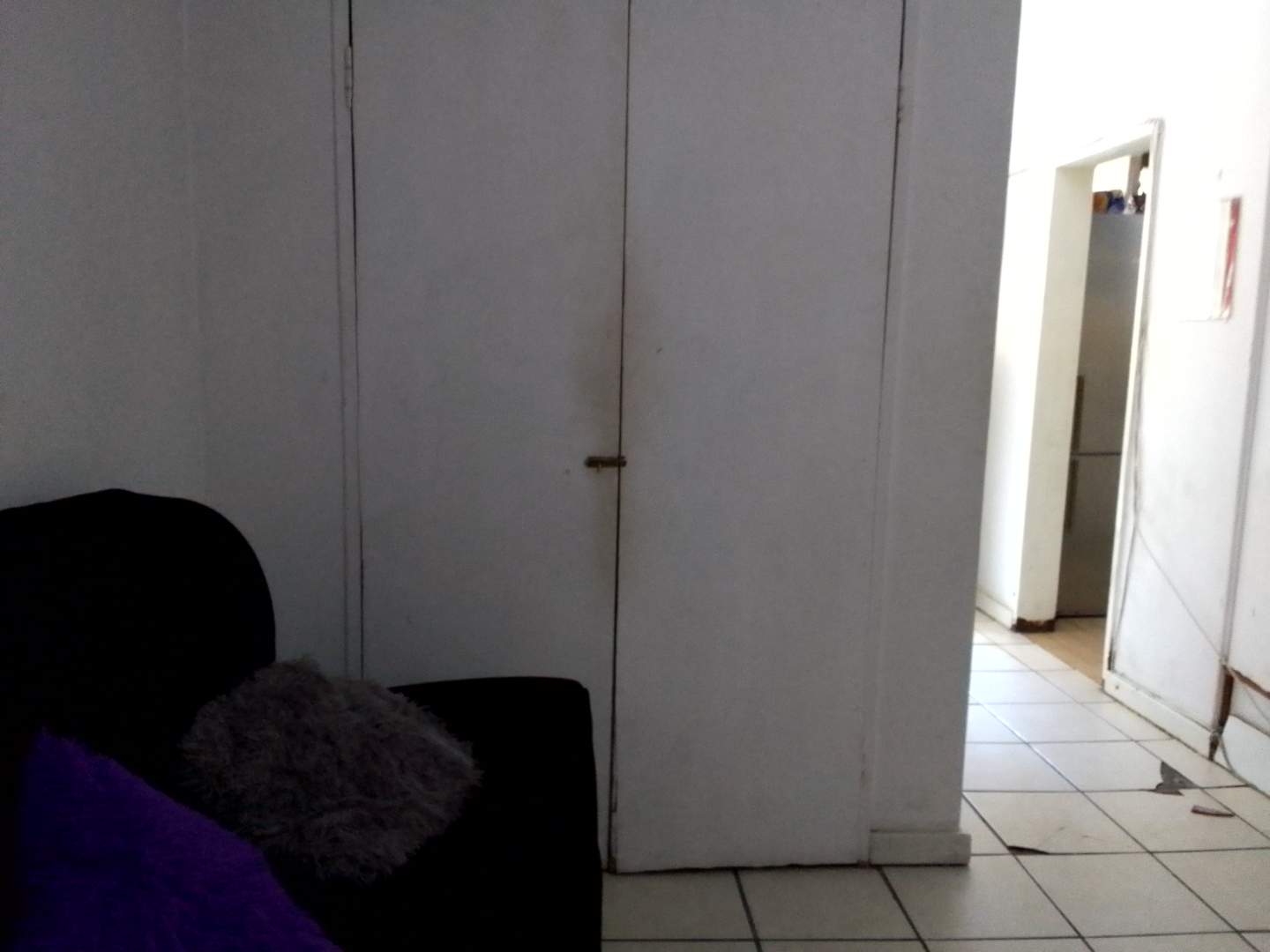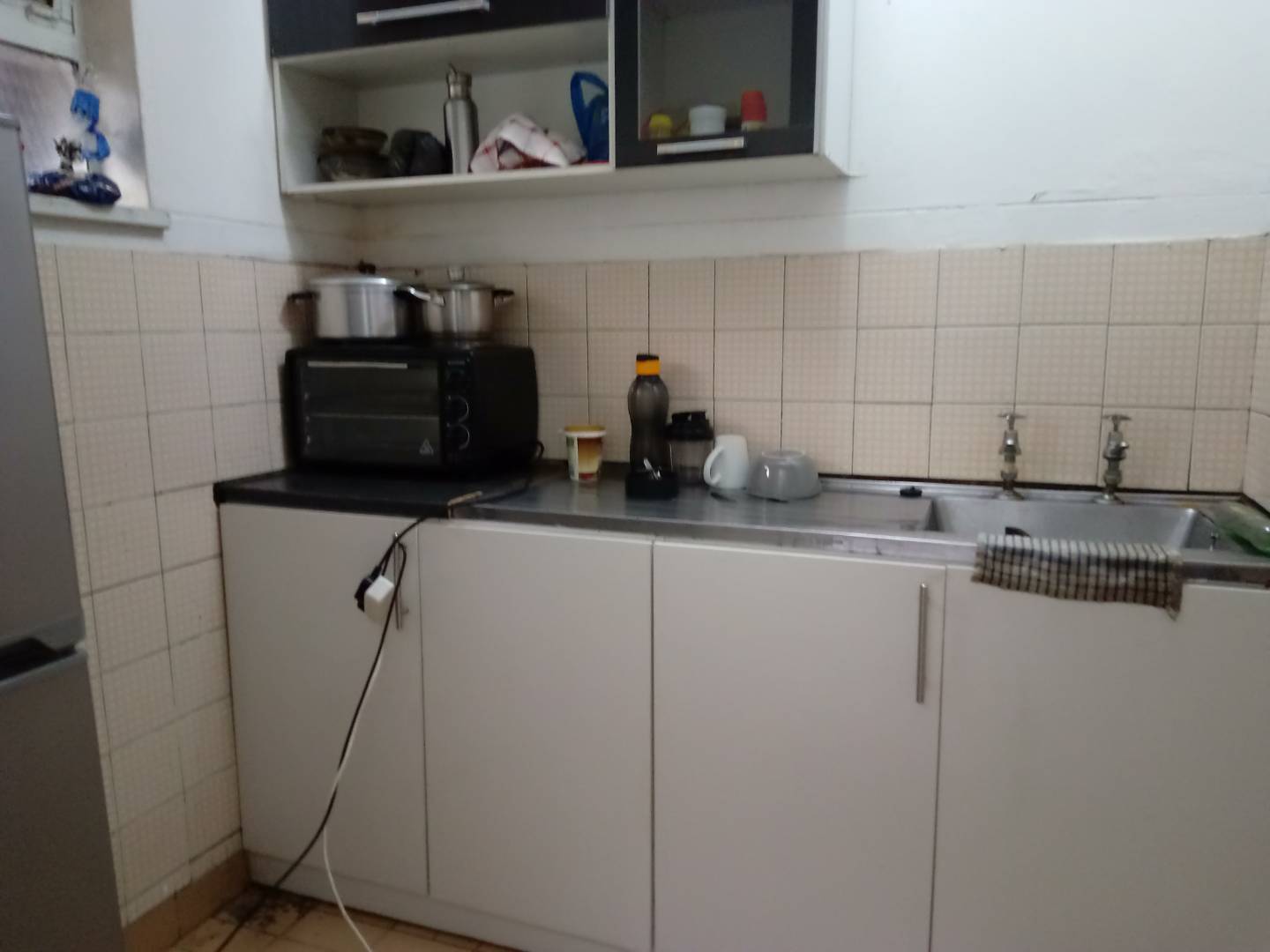 This apartment has been divided into two small rooms. The unit is fully tiled and the bathroom has a shower and toilet. The dining area includes built-in cupboards for extra storage. A neat kitchen with built-in cupboards complements the apartment.