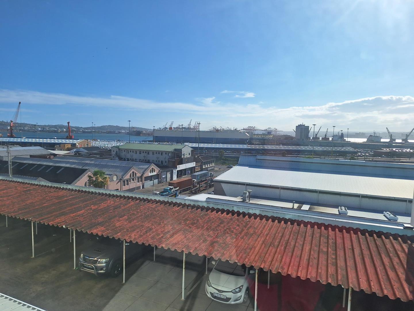 Overlooking the harbour partial, is this bachelor apartment , aluminium door, window , open plan room, with kitchenette, separate bathroom with shower cubicle, basin and toilet .