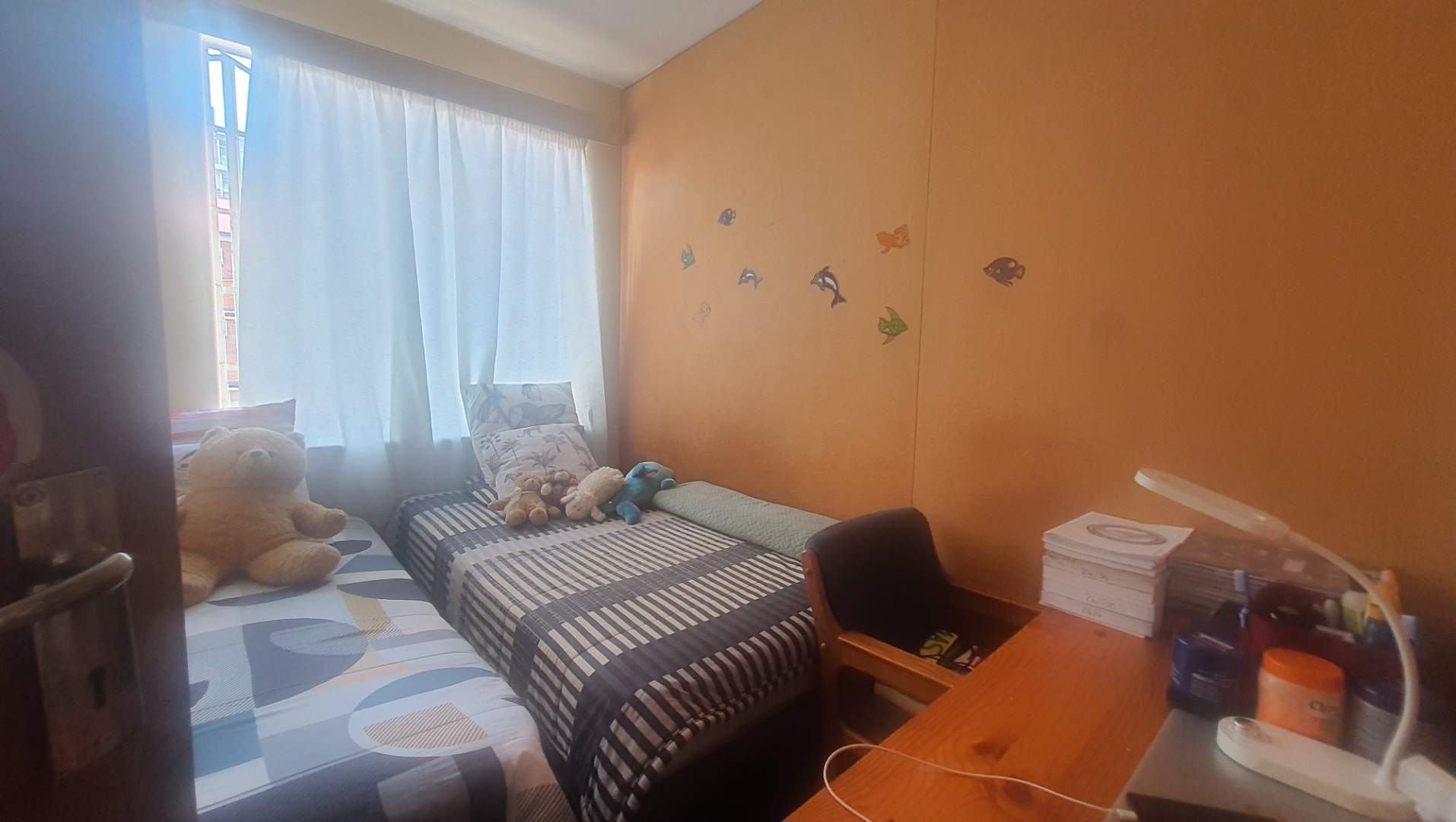 This delightful apartment features a spacious bedroom that has been ingeniously partitioned to create a second bedroom, making it an excellent choice for those seeking additional space or shared living arrangements. The thoughtful layout maximizes the available space, providing a practical and versatile living environment.