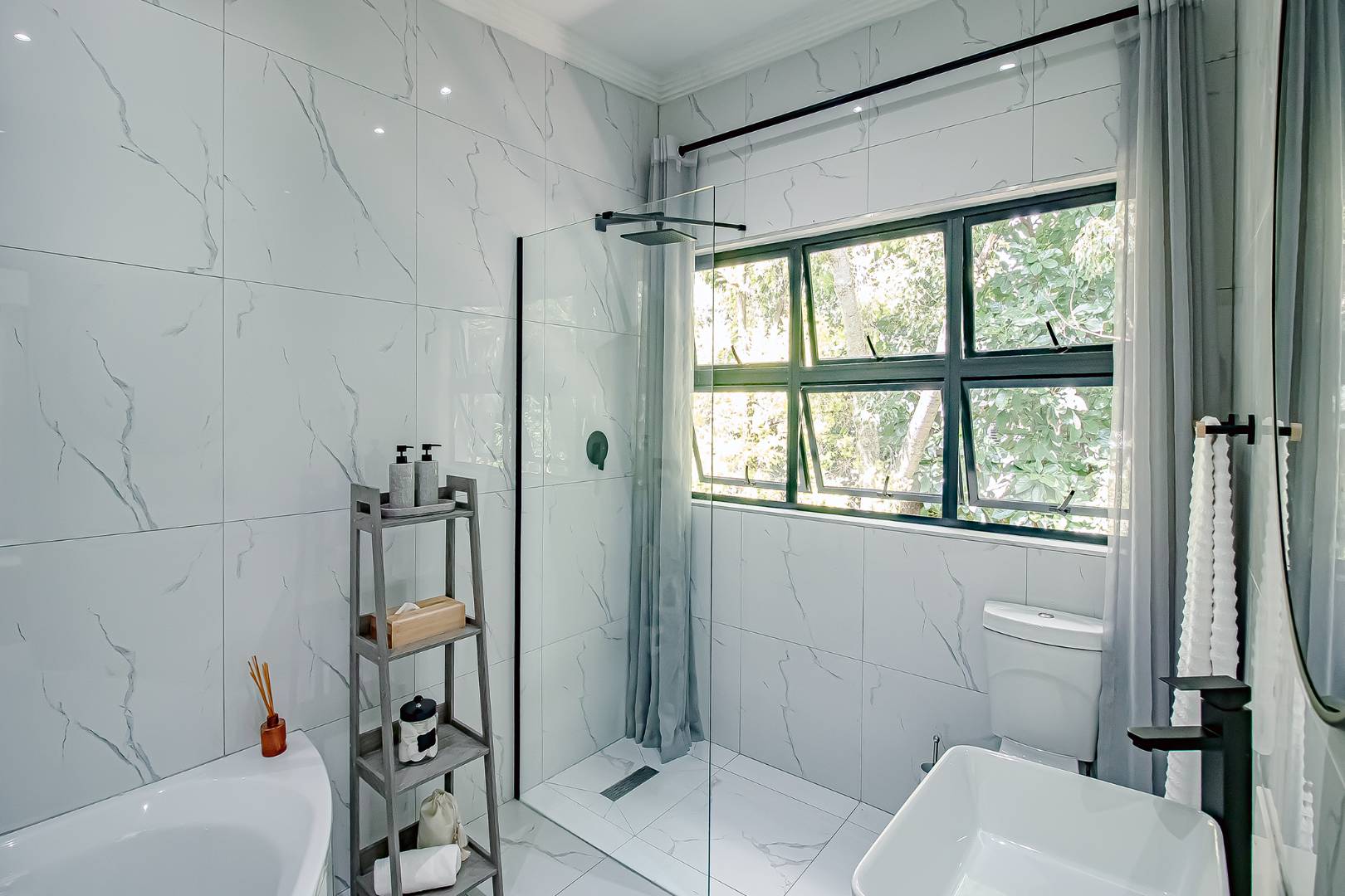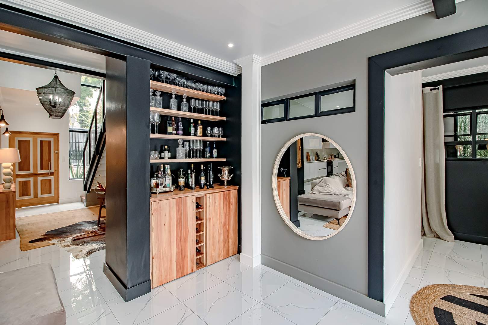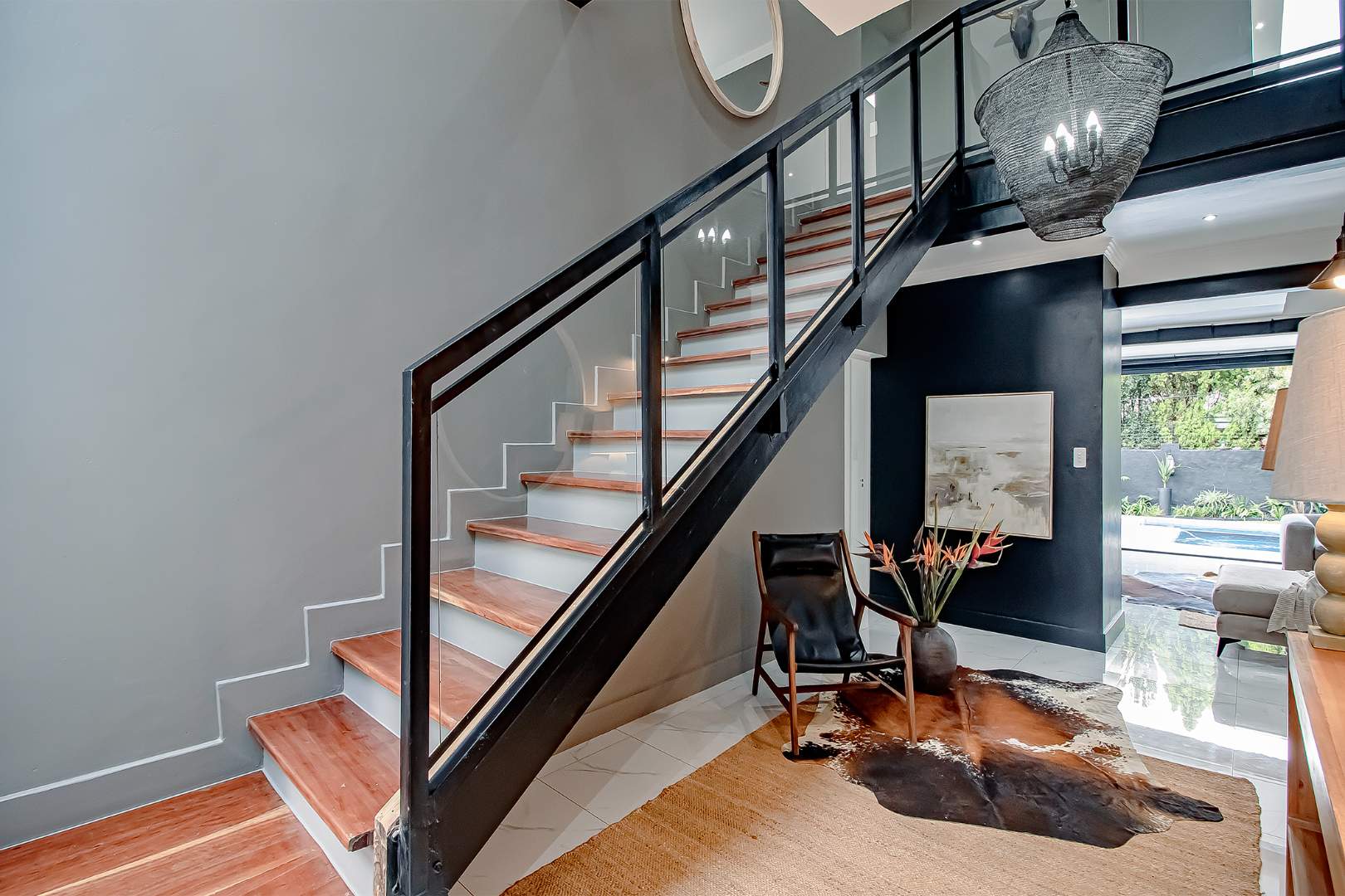 Flooded with natural light and designed for both family living and sophisticated entertaining, the home boasts expansive open-plan spaces. A sleek, modern kitchen flows into the dining area and two elegant lounges—a relaxed TV/family room and a formal lounge—complete with a stylish bar, all opening out to the landscaped garden and pool. A separate undercover patio with comfortable seating overlooks the garden, creating a beautiful, tranquil space where you feel completely immersed in the lush surroundings.